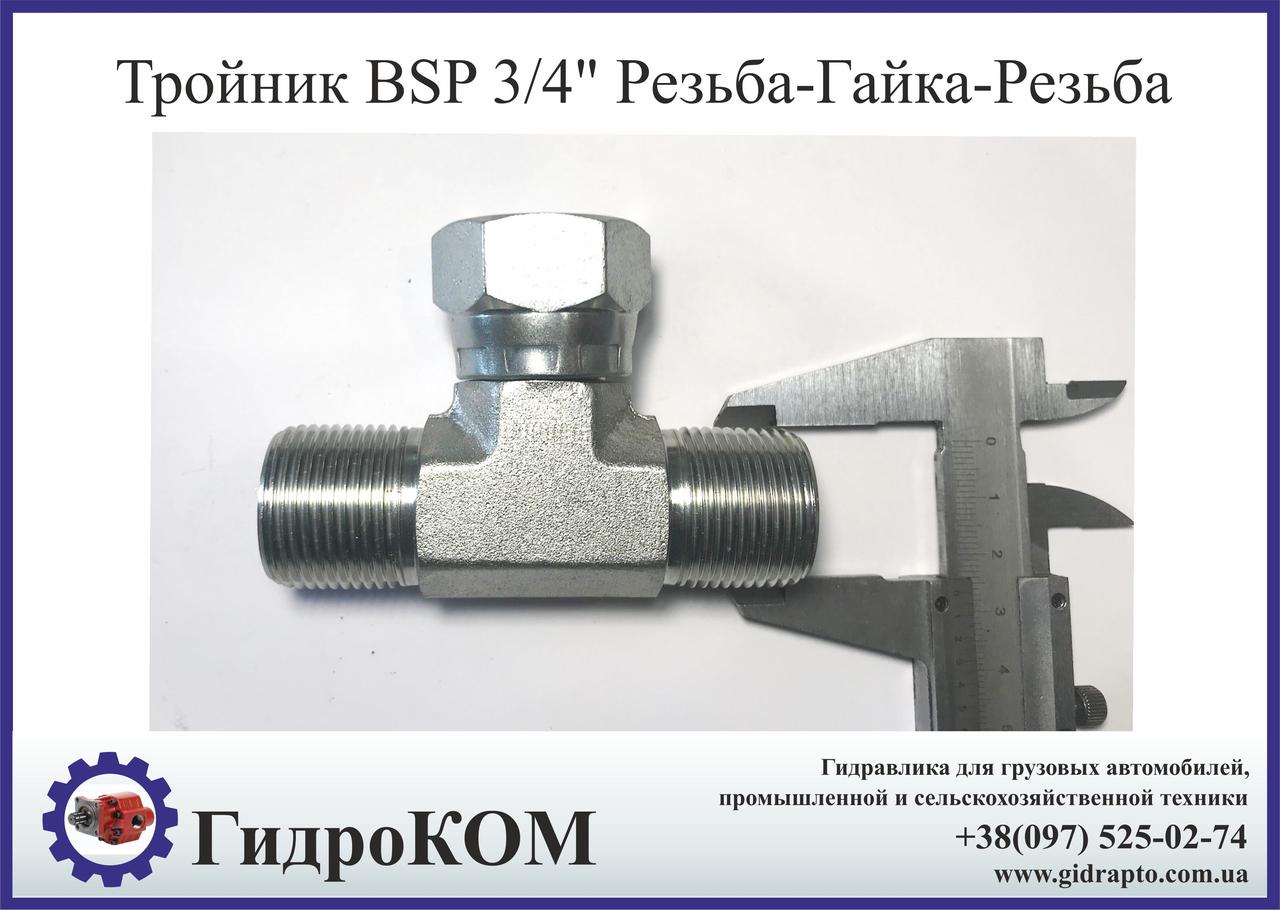 Трійник гідравлічний з різьбами різьба BSP 3/4", гайка BSP 3/4", різьба BSP 3/4".