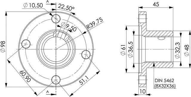 Фланець під вал 32х36 Z = 8 (на вісім зубців)